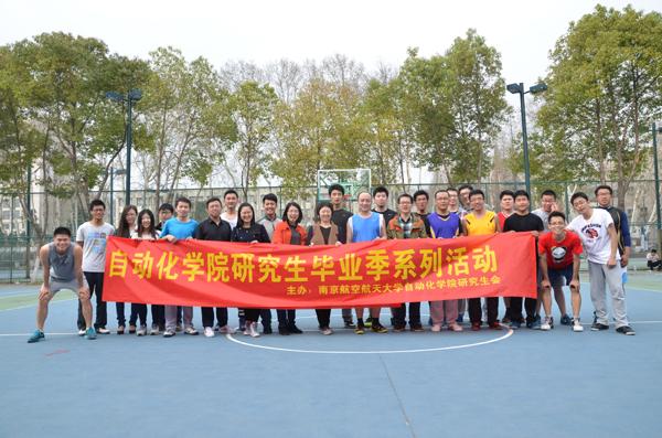 2015年3月30日,南京航空航天大学自动化学院研究生毕业季活动之师生篮球赛正式拉开帷幕,以自动化学院刘建成书记、张之梁教授等院领导和老师组成的教师代表队与研三学子组成的毕业生代表队展开激烈角逐。这场比赛旨在为在我院和全校营造浓厚毕业季氛围,进一步增进毕业生之间以及毕业生对母校的感情。