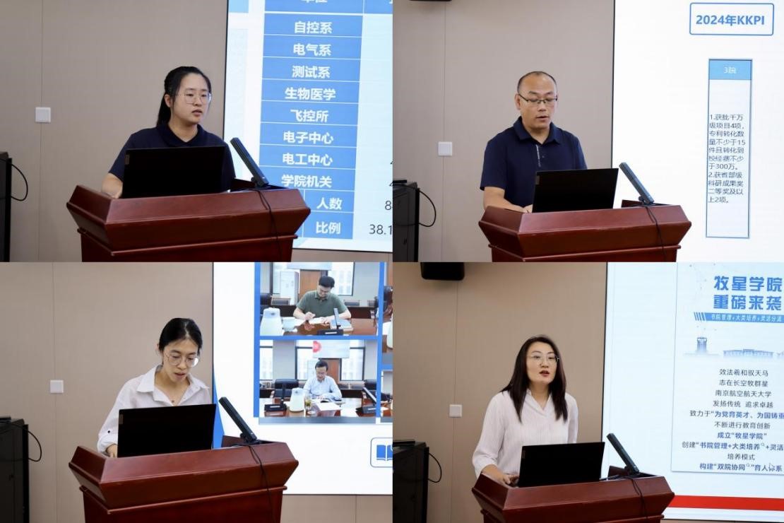 党政办公室主任刘斐文、组织员黄巍、学科科研办主任李亚楠、团委书记宋欣分别围绕学院未来十年的关键办学指标及“十五五”规划,结合机关科室主要工作职责做主题发言。