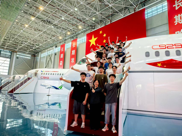 随后,师生团队实地参观了上飞院展馆。展馆内,一件件承载历史的展品、一幅幅记录关键节点的影像,系统呈现了国产大飞机从技术突破到市场应用的全过程。当师生驻足于展馆中,仰望高高悬挂的五星红旗,凝视着国产大飞机模型与珍贵历史资料时,强烈的自豪感与民族认同感油然而生。现场学生感慨:“这不仅是一次对国产大飞机研发历程的直观学习,更是一场深刻的爱国教育与精神洗礼,让我们深刻感受到作为新时代航空学子肩负的责任与使命。”